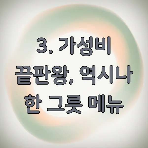 | 1 | 백반, 국밥 | 든든함, 가성비, 집밥 느낌 | 7,000원 ~ 10,000원 |