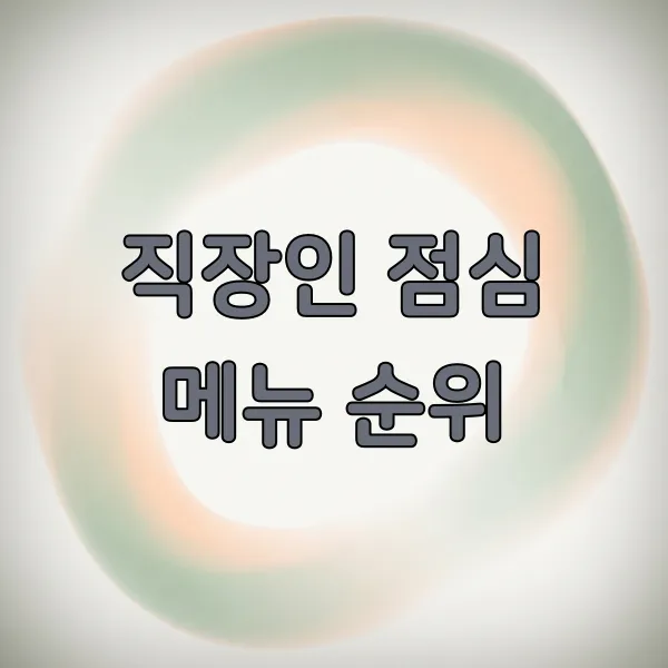 "점심 뭐 먹지?" 이 질문, 매일 아침 저를 괴롭히는 단골 질문이에요. 밥값이 만만치 않은 요즘, 맛도 좋고 가성비까지 챙길 수 있는 점심 메뉴 고르기가 정말 어렵더라고요. 그래서 오늘은 제가 직접 경험하고 주변 동료들의 의견까지 모아, 직장인 점심 메뉴 순위를 공개해 봅니다! 매일 똑같은 메뉴만 고집하시거나, 새로운 메뉴를 찾고 계신다면 이번 포스팅이 큰 도움이 될 거예요.
